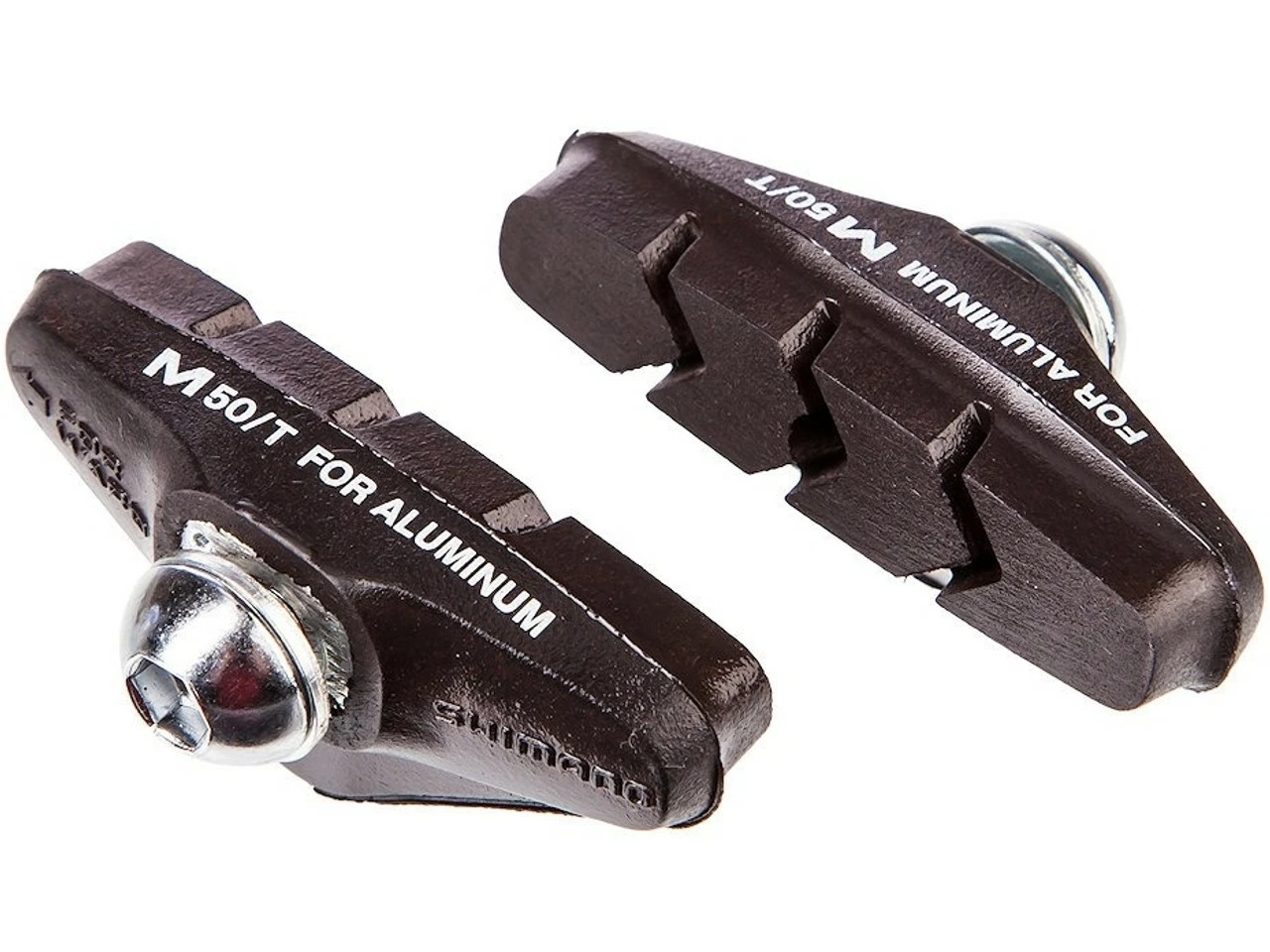 Die Shimano M50T Bremsschuhe (1 Paar) sind kompatibel mit älteren Rennrad-Bremsen auf Tiagra und Sora Niveau. Sie sind 50 mm lang und mit fest montierten Belägen ausgestattet, die vor allem durch ihre überdurchschnittlich gute Funktionsleistung bei Nässe überzeugen. M50T verschleißen (beim Einsatz auf der Straße) nicht so schnell und arbeiten sehr leise.