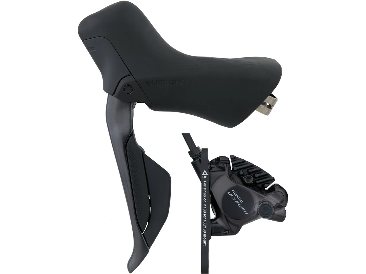 Spezifikationen:Serie:Ultegra R8100Einsatzbereich:RoadSchaltstufen:2-fach, 12-fachSchaltsystem:elektronisch, semi-wirelessBremsentyp:hydraulisch, 2-KolbenBremsmedium:MineralölLeitung:SM-BH90-JK-SSRLeitungslänge VR/HR:1000 mm / 1700 mmTechnische Daten Schalt-/Bremsgriff:Material Bremshebel:AluminiumMaterial Griffkörper:Carbon (CFRP)Montage:Klemmschelle (geschlossen)Griffweiteneinstellung:SchraubeEinstelloptionen:Griffweiteneinstellung, DruckpunkteinstellungTechnische Daten Bremssattel:Montage:Flat MountBremsbelag:Resin mit KühlrippenBauweise:2-teiligMaterial Bremssattel:AluminiumMaterial Kolben:ResinLeitungsanschluss:geradeKompatibilität:Schalt-/Bremsgriff: