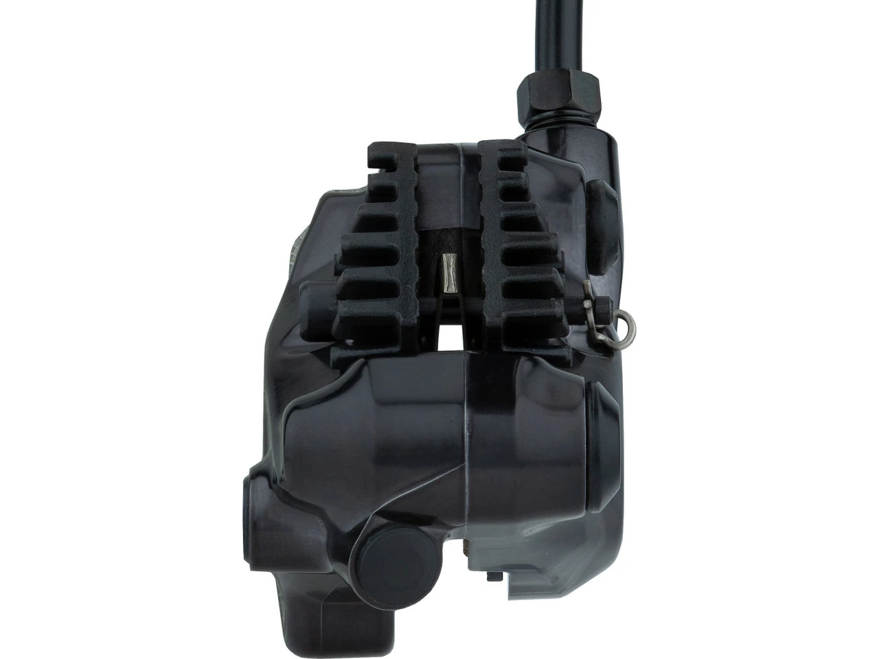 Die Ultegra Scheibenbremse wird mit Bremsleitung und Ice-Tech-Resinbelägen geliefert, die aufgrund ihrer Kühlrippen besonders gute Hitzeableitung gewährleisten. Du kannst sie aber auch mit herkömmlichen Pads fahren.