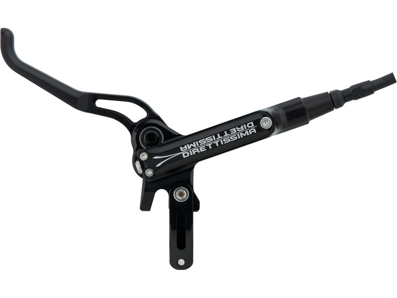 Die schlanke und elegante Lenkerklemmung der CLEG wurde bei der Direttissima nochmal überdacht und konsequent auf Zug- und Druck-Belastung reduziert. Die zweiteilige Bauweise gleicht Abweichungen im Lenkerumfang aus. So entsteht eine extrem große Kontaktfläche, die den Lenker nahezu 360° umschließt und keine Kerb- und Punktbelastungen auf den Lenker weitergibt. Dies prädestiniert die Direttissima vor allem auch für empfindliche Carbon-Lenker, die möglichst schonend und großflächig geklemmt werden sollten. Die breite Abstützung verhindert wirksam ein “ Mitbiegen“ des Bremshebels unter starkem Hebelzug. So wird der Druckpunkt versteift und das Bremsgefühl noch direkter.